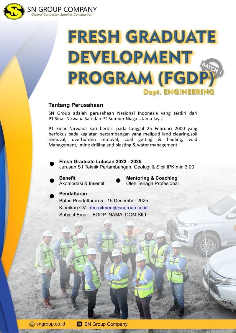 Program ini merupakan kesempatan emas bagi talenta muda yang ingin berkarier di industri pertambangan dengan bimbingan langsung dari para ahli di lapangan.