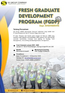 Sebagai bagian dari komitmen pengembangan talenta muda, SN Group kembali membuka program Fresh Graduate Development Program (FGDP) Batch 1 – Dept. Engineering pada tahun 2025.