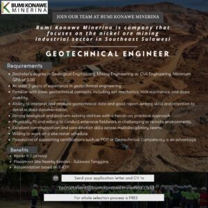 Send your cv at recruitment@bumikonaweminerina.co.id
