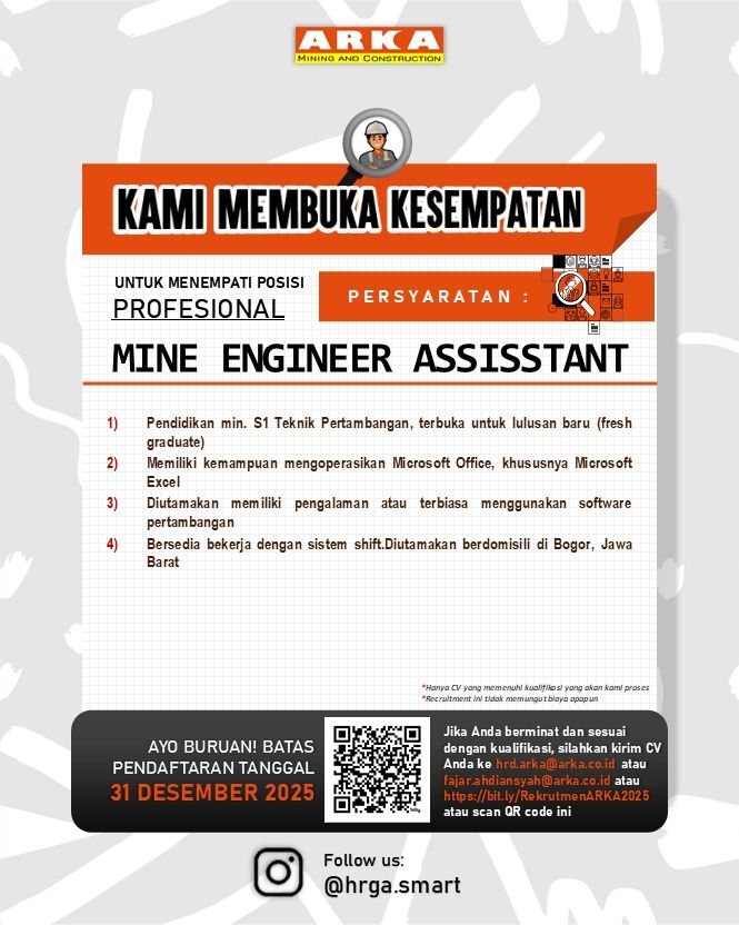 Perusahaan ARKA Mining and Construction membuka kesempatan berkarier untuk posisi: