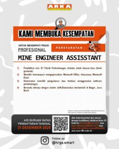 1. Pendidikan minimal S1 Teknik Pertambangan (terbuka untuk fresh graduate).