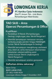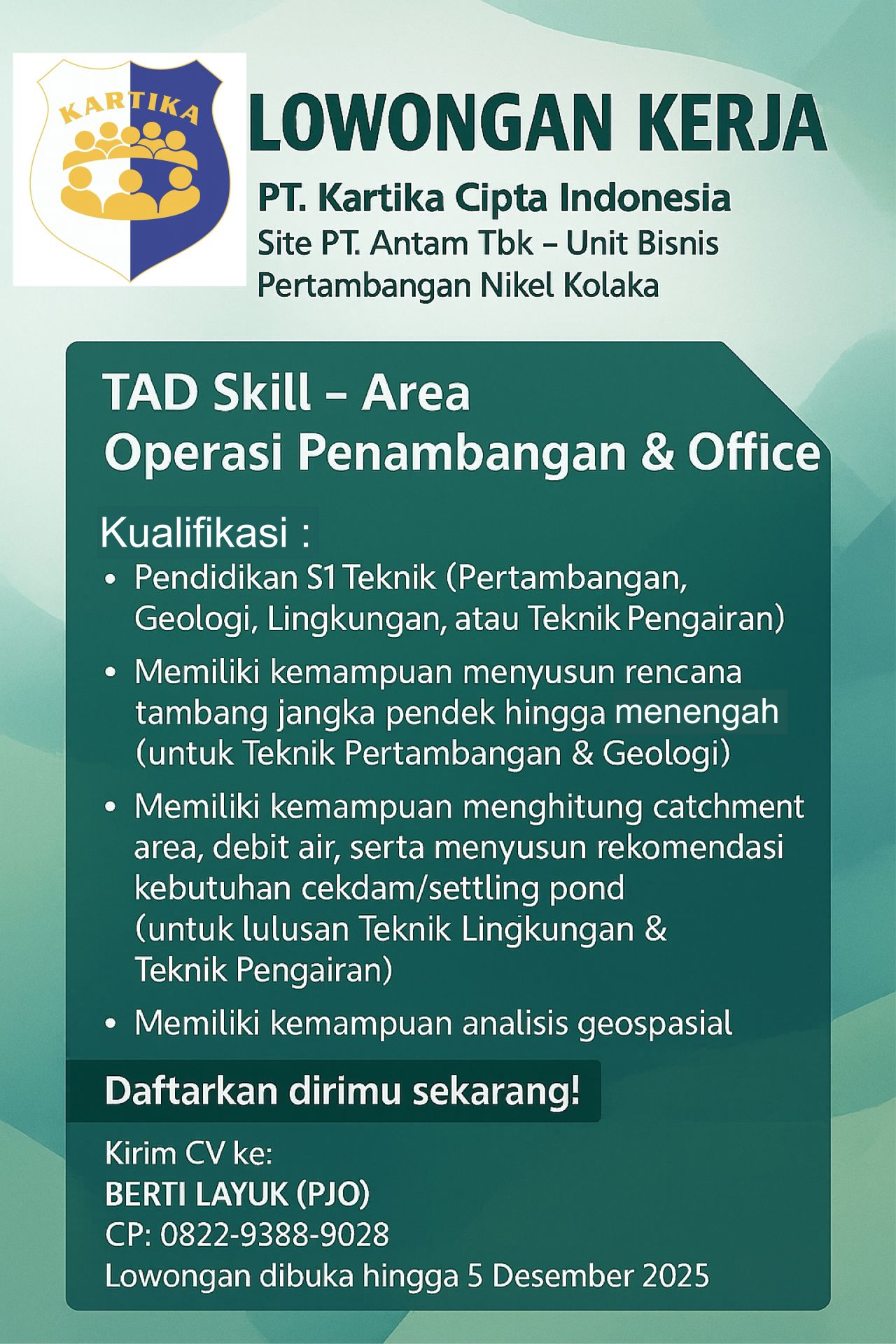 Lowongan Kerja: TAD Skill – Area Operasi Penambangan & Office